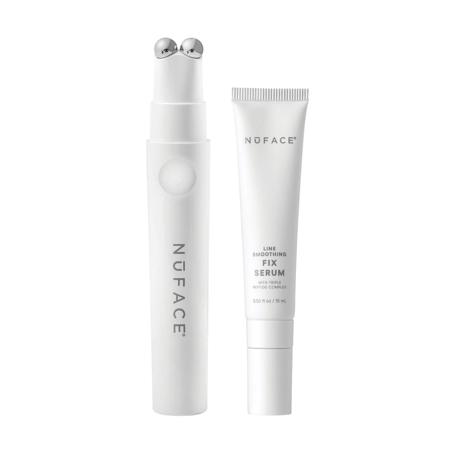 The NuFACE FIX is a line smoothing device that instantly targets the look of fine lines and wrinkles around the eyes, mouth, and forehead with gentle microcurrent. NuFACE FIX is the mascara-sized award-winning beauty device that is helps to create fuller lips when used around the lip line.Â