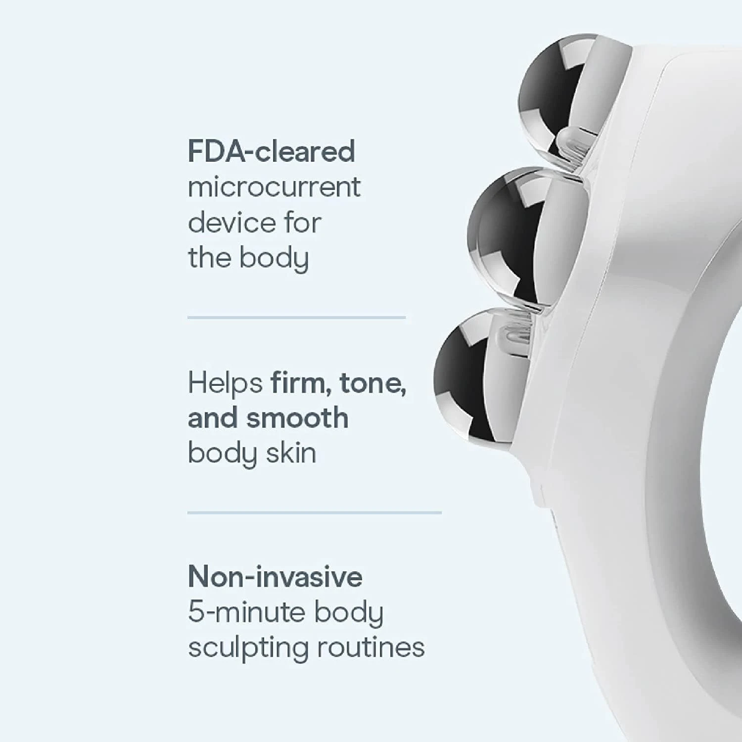 The NuBODY Toning and Firming Kit is a microcurrent skin toning device that visibly helps tone and firm body skin while smoothing away the look of dimples on arms, the buttocks, abs and thighs. The NuBODY helps to visibly tone, firm, and smooth the look of dimples for a smooth silhouette.