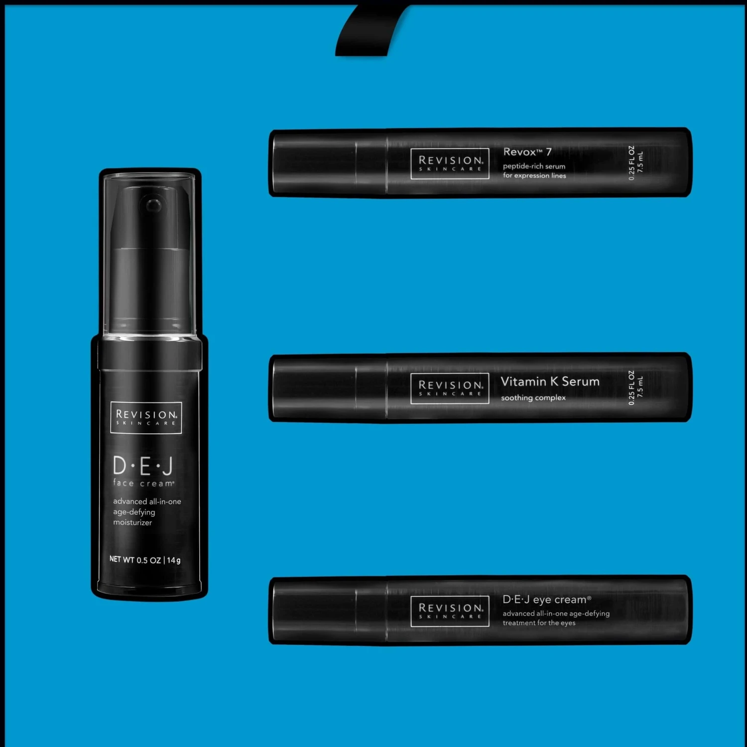 Injection Perfection Limited Edition Trial Regimen – Enhance and prolong treatment results with this distinctive regimen of Revision Skincare products formulated to pair perfectly with in-office injections and fillers. Calm and soothe skin while smoothing fine lines and wrinkles in-between visits to protect your beauty investment.*